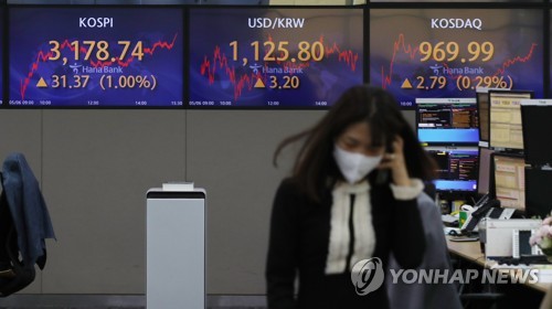 (서울=연합뉴스) 박원희 기자 = 코스피가 6일 경기 재개에 대한 기대감에 힘입어 3,180선에 다가섰다.