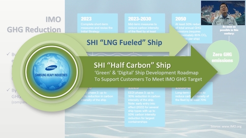 정호현 삼성중공업 기술개발본부장은 "삼성중공업은 국제해사기구의 중장기 온실가스 배출 저감 목표를 달성하기 위한 가장 효과적인 솔루션 제공을 위해 노력하고 있다"고 밝혔다.
