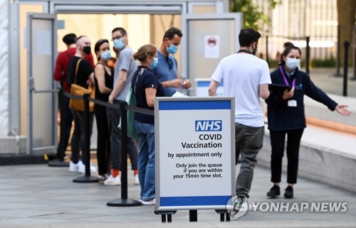 (런던=연합뉴스) 최윤정 특파원 = 델타 변이 확산으로 인해 영국의 신종 코로나바이러스 감염증(코로나19) 하루 신규 확진자가 크게 늘고 있다.