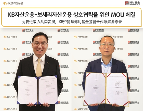 ▲ KB자산운용은 지난 9일 중국 보세라자산운용과 상장지수펀드(ETF) 교차 상장을 위한 업무협약을 맺었다. 이번 협약은 한국거래소와 중국 상하이거래소가 추진 중인 '한중 ETF교차상장 제도'에 대응하기 위한 것이다. 한국에 상장된 ETF를 중국 운용사를 통해 상하이거래소에 상장하고 중국에 상장된 ETF를 국내 운용사 ETF로 한국거래소에 상장하게 된다. (서울=연합뉴스)