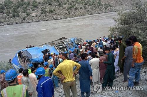 지난 14일 파키스탄 북부 카이버·파크툰크와주(州) 어퍼 코히스탄에서 이동 중이던 버스가 폭발하면서 계곡으로 굴러떨어져 중국인 9명 등 13명 이상이 숨졌다.