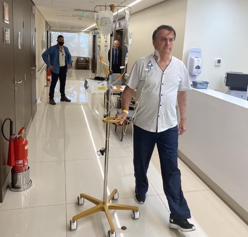 상파울루 시내 빌라 노바 스타 병원에 입원 중인 보우소나루 대통령은 16일(현지시간) 소셜미디어(SNS)를 통해 자신의 근황을 알리면서 마스크를 쓰지 않은 채 병원 복도를 돌아다니는 사진을 올렸다.