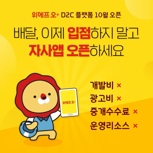 (서울=연합뉴스) 황희경 기자 = 배달앱 '위메프 오'는 오는 10월 고객 직접 판매(D2C) 서비스인 '위메프오플러스'를 출시한다고 12일 밝혔다.