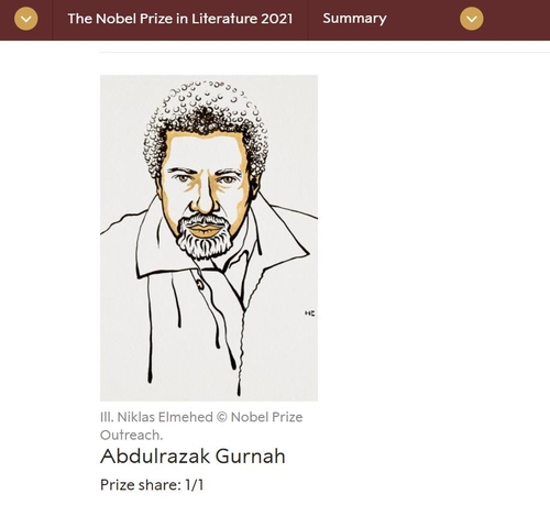 (서울=연합뉴스) 박대한 기자 = 올해 노벨 문학상의 영예는 탄자니아의 소설가인 압둘라자크 구르나(Abdulrazak Gurnah)에게 돌아갔다.