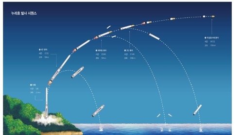 233초 후에는 고도 191㎞에서 페어링(위성 등 발사체 탑재물을 보호하는 역할을 하는 덮개)이 분리된다. 페어링이 정확한 시간에 제대로 분리돼야 누리호에 실린 모사체 위성(더미 위성)이 목표한 궤도에 투입될 수 있다.