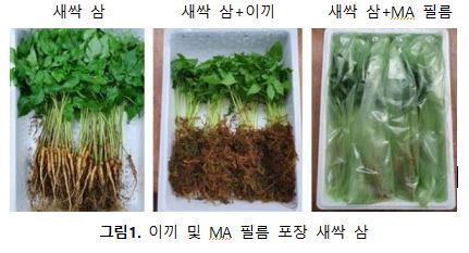 조사팀이 이끼를 덮은 새싹삼과 MA 포장재로 싼 새싹삼을 각각 7일간 보관한 결과 포장재에 든 새싹삼의 세균과 곰팡이 수가 이끼로 덮은 것의 각각 56%, 27% 수준이었다.