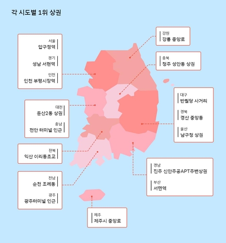 전국 100대 상권 중 월 평균 매출이 가장 큰 곳은 압구정역이었다. 이 지역이 매출 1위를 기록한 것은 SKT가 2012년 상권 분석을 시작한 이래 처음이다.
