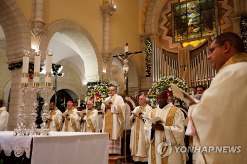 팔레스타인 자치령인 요르단강 서안 베들레헴의 예수 탄생 기념 성당에서는 피에르바티스타 피자발라 대주교 집전 아래 기념 미사가 열렸습니다. 베들레헴은 아기 예수가 탄생한 곳입니다.