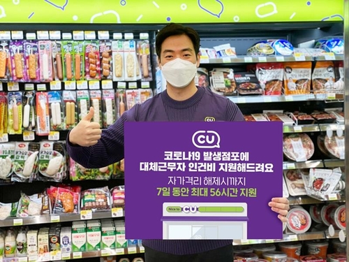 (서울=연합뉴스) 이신영 기자 = 편의점 CU는 최근 신종 코로나바이러스 감염증(코로나19) 확진자 수가 급증하고 있는 점을 고려해 가맹점에 대체 근무자 인건비를 지원한다고 22일 밝혔다.