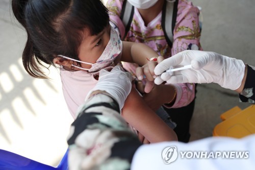 (방콕=연합뉴스) 김남권 특파원 = 캄보디아가 23일 3~4세 어린이들을 대상으로 코로나19 백신 접종을 시작했다.