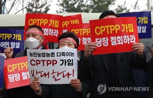 (서울=연합뉴스) 이영섭 기자 = 농어민 단체는 25일 "정부가 포괄적·점진적 환태평양경제동반자협정(CPTPP) 가입을 무리하게 추진하고 있다"고 비판하면서 가입 저지를 위한 단체 행동을 예고했다.