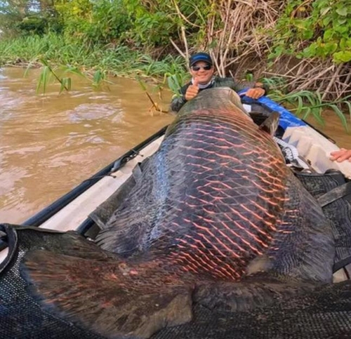 15일(현지시간) 브라질 매체들에 따르면 스포츠 낚시 동호인인 안데르손 게지스와 울라지스 쿠샤르스키는 최근 북부 호라이마주 마데이라강에서 잡은 물고기 '피라루쿠'를 소셜미디어(SNS)에 올렸다.