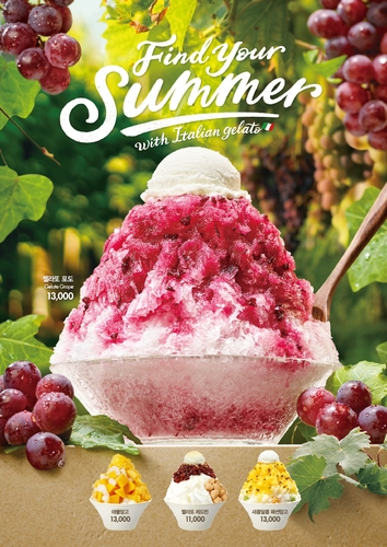 빙수 4종은 팥과 인절미를 올린 '젤라또 레드빈'과 '애플망고', '젤라또 포도', '새콤달콤 패션망고' 등이다.