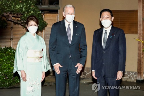 (도쿄=연합뉴스) 류지복 김호준 박성진 특파원 = 조 바이든 미국 대통령이 23일 도쿄에 있는 고급 식당인 핫포엔에서 기시다 후미오 일본 총리와 만찬을 함께 했다.