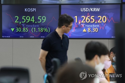 이날 코스피도 장 초반 하락해 2,600선 아래로 내려가며 약세 흐름을 보인다.