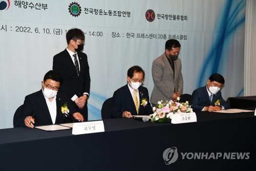 이날 협약식에는 조승환 해수부 장관을 비롯해 최두영 전국항운노동조합연맹 위원장, 노삼석 한국항만물류협회 회장 등 항만물류업계 관계자 100여명이 참석했다.