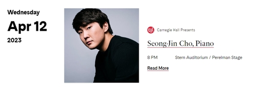 카네기홀은 14일(현지시간) 내년 4월 12일 스턴오디토리움에서 조성진의 독주회를 연다고 밝혔다.