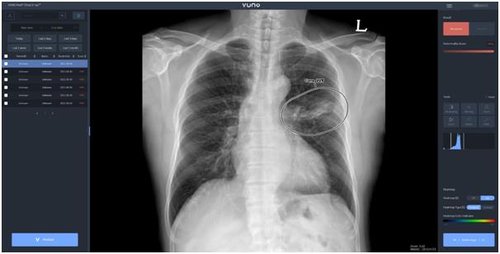 이 제품은 흉부 엑스레이 영상에서 결절, 경화, 간질성 음영, 흉수, 기흉 등 주요 이상소견을 탐지하는 AI 솔루션이다. 의료진에게 이상 소견과 위치를 제시해 결핵, 폐렴 등 주요 폐 질환 진단을 돕는다.