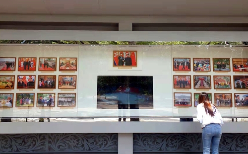 김 위원장과 시 주석 내외가 1959년 10월 2일 김일성 주석이 중국을 방문했을 당시 심었다는 나무를 배경으로 찍은 사진도 게시판 한쪽을 차지하고 있었다.