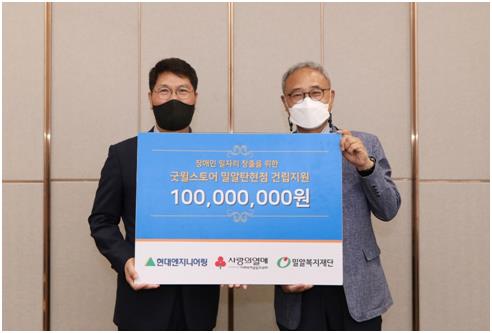 (서울=연합뉴스) 서미숙 기자 = 현대엔지니어링은 발달장애인 일자리 창출 및 자립기반을 제공하는 장애인 직업재활시설인 '굿윌스토어 밀알탄현점' 건립을 위해 굿윌본부에 후원금 1억원을 기부했다고 21일 밝혔다.