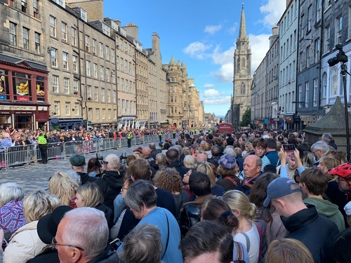 일반인 조문에 앞서 여왕의 시신은 훌리루드 궁전에서 성자일스 성당까지 이어진 로열마일 도로를 따라 운구됐다. 국왕 찰스 3세와 운구 행렬을 보려는 추모객이 로열마일 양옆에 쳐진 철제 울타리 뒤에 빽빽이 운집했다.