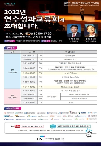 (서울=연합뉴스) 문다영 기자 = 국가과학기술연구회(NST)는 15일 세종국책연구단지에서 출연연 맞춤형 인력양성사업(이하 'YS(Young Scientists) 사업') 연수성과교류회를 개최한다고 13일 밝혔다.