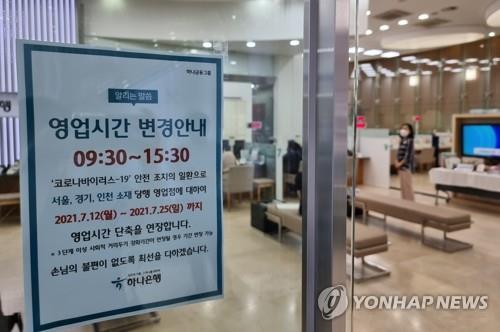 (서울=연합뉴스) 심재훈 기자 = 신종 코로나바이러스 감염증(코로나19)으로 인한 사회적 거리두기로 영업시간을 단축했던 시중은행과 저축은행 대부분이 아직도 단축 영업을 하고 있어 소비자 불편이 크다는 지적이 20일 제기됐다.