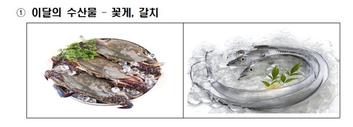 (서울=연합뉴스) 차민지 기자 = 해양수산부는 10월의 수산물로 제철 수산물인 꽃게와 갈치를 선정했다고 3일 밝혔다.