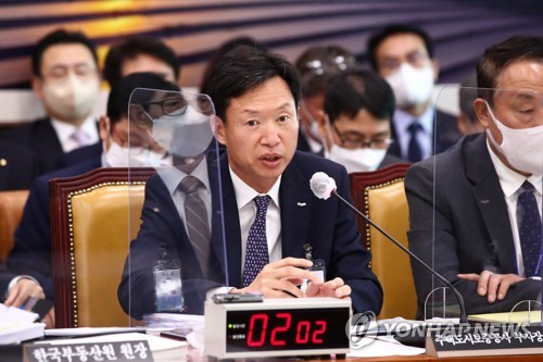 (서울=연합뉴스) 서미숙 한주홍 김치연 기자 = 12일 국회에서 열린 국회 국토교통위원회 국정감사에서는 주택도시보증공사(HUG) 보증상품 부실 관리에 대한 의원들의 질타가 이어졌다.