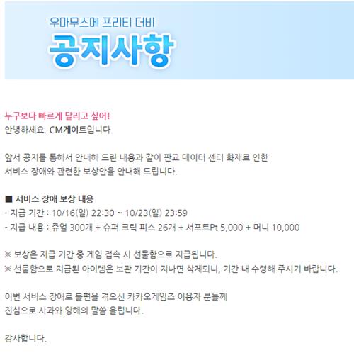 또 서비스 장애 기간 사용기한이 끝난 캐시는 재지급될 예정이다.