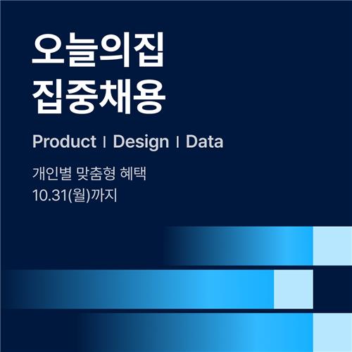 (서울=연합뉴스) 임성호 기자 = 라이프스타일 플랫폼 오늘의집(운영사 버킷플레이스)은 프로덕트 오너(PO), 데이터 분석가, 프로덕트 디자이너 3개 부문 프로덕트 빌더를 채용한다고 19일 밝혔다.