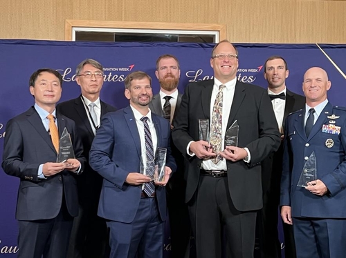 ▲ 한국항공우주산업(KAI)은 자사의 초음속 전투기 KF-21 보라매가 미국 항공우주 전문매체 '에비에이션 위크' 연례 시상식의 방위산업 부문에서 수상했다고 8일 밝혔다. 올해로 65회를 맞는 에비에이션 위크 연례 시상식은 한 해 동안 특별한 성과를 거둔 항공기, 회사, 기관, 개인 등을 선정해 상업 항공, 우주, 방위산업, 비즈니스 항공 등 4개 부문별 상을 수여한다. KF-21은 올해 방위산업 부문을 수상한 유일한 전투기로, 지난 7월 최신형 4.5세대 전투기를 세계에 선보인 기념비적인 첫 비행을 했다는 평가를 받았다. (서울=연합뉴스)