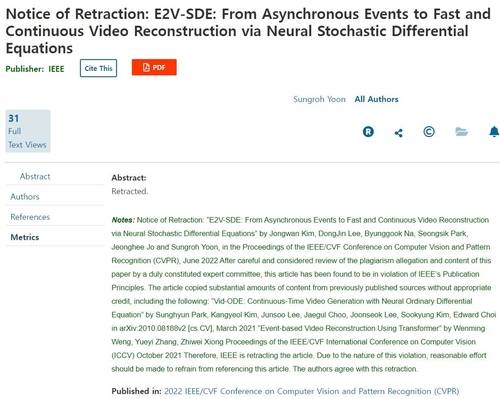 이어 "적절한 절차에 따라 구성된 전문가 위원회에서 표절 혐의와 내용을 신중하게 검토한 결과 이 논문이 IEEE 출판 원칙을 위반하는 것으로 밝혀졌다"고 덧붙였다.