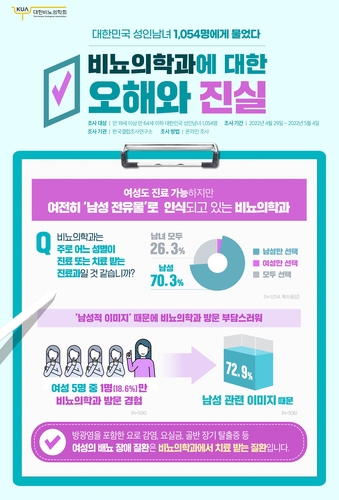 의학회는 '남성 전유물'로 인식되고 있는 비뇨의학과의 현재 모습을 보여주는 조사 결과라고 설명했다.