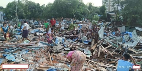 (양곤[미얀마]=연합뉴스) 이정호 통신원 = 미얀마 군사정권이 민간 가옥을 강제로 철거해 주민들을 거리로 내몰고 있다.