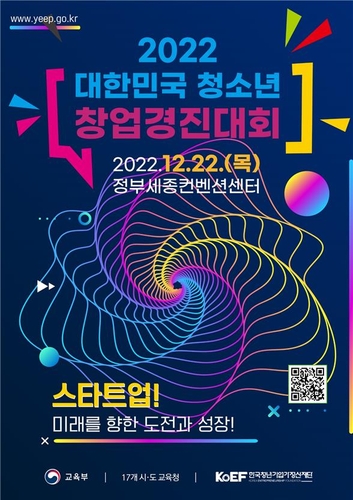(세종=연합뉴스) 김수현 기자 = 교육부와 17개 시·도 교육청, 한국청년기업가정신재단은 22일 정부세종컨벤션센터에서 '2022 대한민국 청소년 창업경진대회' 최종 결선과 시상식을 개최한다고 20일 밝혔다.