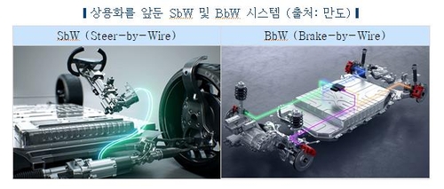 아울러 만도와 현대모비스[012330], 보쉬, 콘티넨탈, 히타치 등 글로벌 부품기업들이 SbW나 BbW의 양산을 추진 중이다.