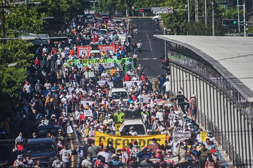 쿠스카틀란 공원에서 헤라르도바리오스 시민광장에 이르는 약 2㎞ 거리를 이동한 이들은 국가비상사태가 내려진 가운데 만연한 인권 침해를 비판하는 취지의 구호를 외쳤다.