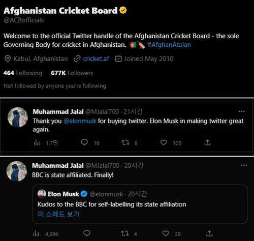 탈레반 관리로 알려졌던 무하마드 잘랄도 이날 머스크에 대해 "트위터를 다시 훌륭하게 만들었다"는 글을 올렸다.