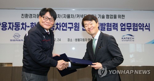 (서울=연합뉴스) 최평천 기자 = 쌍용차[003620]는 한국자동차연구원(한자연)과 친환경차 등 미래차 연구개발 협력 강화를 위한 양해각서(MOU)를 체결했다고 27일 밝혔다.