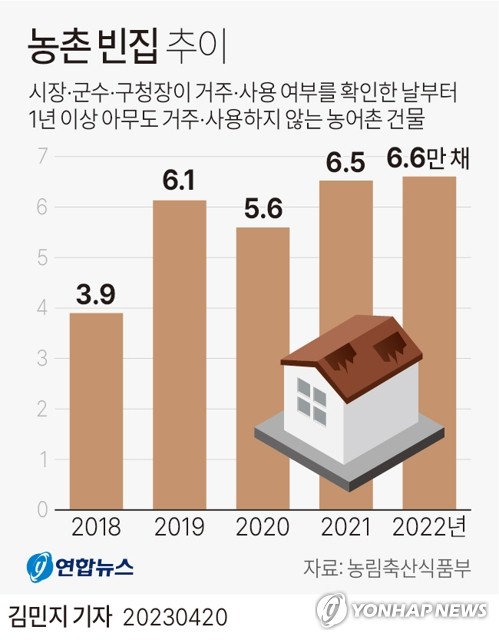 현재 농촌 빈집은 6만6천곳이 있는데, 2027년까지 3만3천곳까지 감축한다는 것이다.