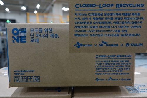 (서울=연합뉴스) 김치연 기자 = SK에코플랜트는 CJ대한통운[000120], 태림포장[011280]과 물류센터에서 버려진 종이자원을 재생상자로 생산하는 데 성공했다고 15일 밝혔다.