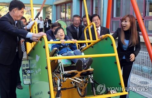 (세종=연합뉴스) 차대운 기자 = 성악가 조수미 씨가 전국 특수학교에 기증한 장애인 어린이용 '휠체어 그네'가 안전 기준이 없다는 이유로 철거돼 논란이 인 가운데 정부의 안전 기준이 곧 마련된다.