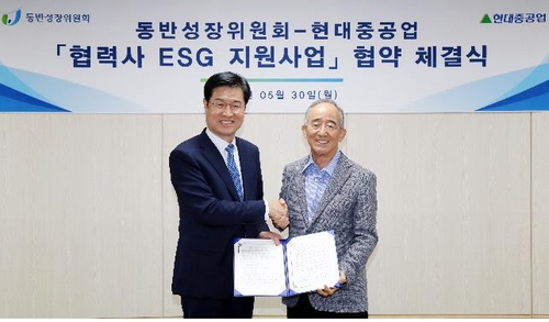 (서울=연합뉴스) 박상돈 기자 = 동반성장위원회는 21일 HD현대중공업[329180]과 서면으로 '2023년도 협력사 ESG 지원 사업 협약'을 체결했다고 밝혔다.