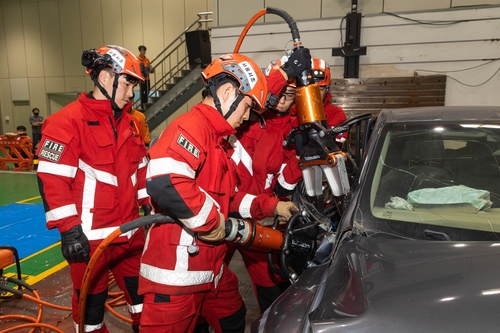 전국 소방대원 50여명은 이날 전기차 안전 구조 이론 교육을 받고, 전기차 화재 발생 시 신속한 구조를 위한 실습을 진행했다.