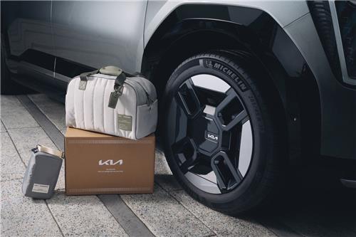 EV9 전면부의 디지털 패턴 라이팅 그릴을 디자인에 반영했고, 아이보리 실버, 아이스버그 그린, 오션블루 등 EV9의 외장 색상을 굿즈에 적용했다. 보스턴백은 EV9의 스위블 시트에서 영감을 받아 내부를 2∼6분할로 수납 가능한 칸막이로 구성해 실용성을 높였다.