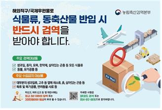 검역본부는 수입 금지 품목이 불법 반입돼 유통될 경우 가축 전염병과 외래 병해충의 원인이 되고, 국내 농축산업에 피해를 줄 수 있다고 우려했다.
