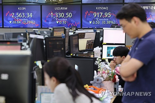 이날 코스피는 전장보다 18.84포인트(0.73%) 내린 2,563.34로 장을 마쳤다.