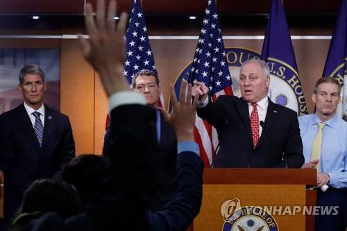 (워싱턴=연합뉴스) 강병철 특파원 = 미국 공화당 소속의 케빈 매카시 전 하원의장이 강경파의 반란으로 축출된 가운데 새 하원의장에 도전한 스티브 스컬리스 공화당 하원 원내대표와 짐 조던 법사위원장이 이례적인 공개토론에 나선다.