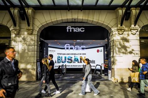 (서울=연합뉴스) 김아람 기자 = LG는 프랑스의 대표적 유통채널 프낙(FNAC)의 파리 거점 매장 4곳에서 2030 부산세계박람회(엑스포) 유치를 지원하는 옥외광고를 선보인다고 9일 밝혔다.